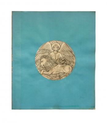 Brief description: A pencil sketch of an angel with St Mark's lion. Design by James Tennant Lyon.