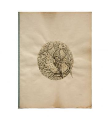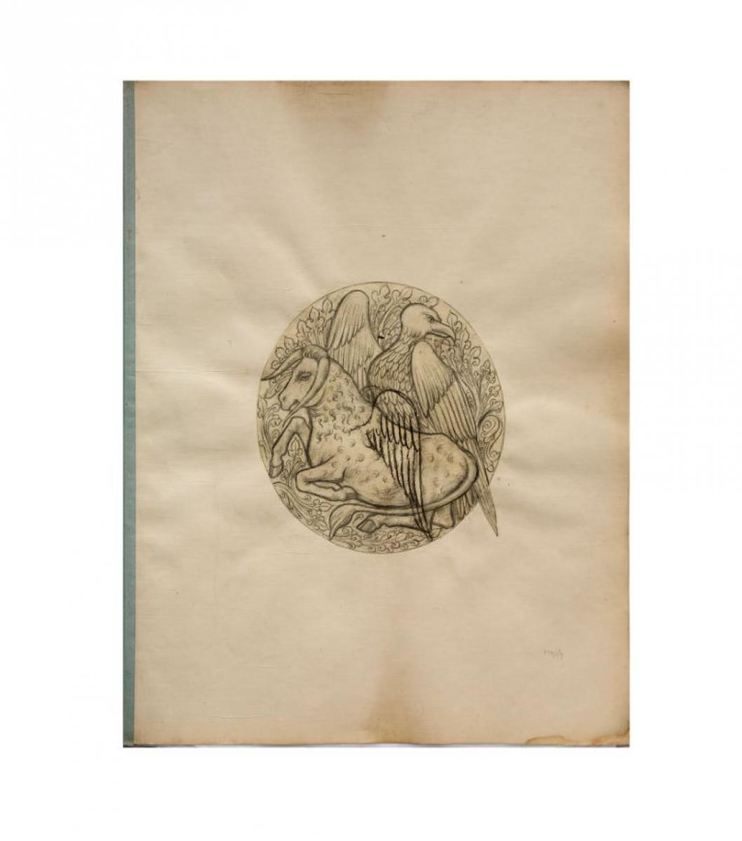 Brief description: A pencil sketch of a winged ox and eagle, symbols of the evangelists Luke and John. Designed by James Tennant Lyon.
