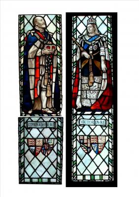 Inscription: top of panel ELYGM:L1989.5.1a VICTORIA R.I. top of panel ELYGM:L1989.5.2a EDWARD VII R.I. bottom right of panel ELYGM:L1989.5.2a HUGH ARNOLD 1910 bottom of Edward's trouser leg L.Y. PEN