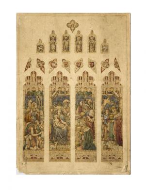 Brief description: A design depicting the nativity scene. Possibly designed by Heaton, Butler and Bayne.