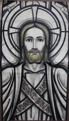 Brief description: Christ cartoon by Francis Spear for the east window of St Mark's Church, Reigate, Surrey, depicting Christ in Majesty.