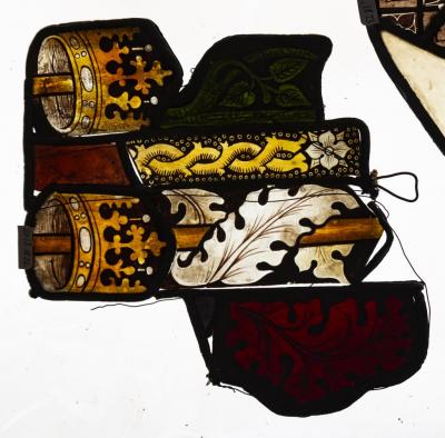 Brief description: A composite panel containing an assortment of medieval fragments.