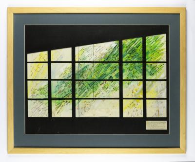 Brief description: A framed design for an abstract window at St ChadÂ’s Church. Patchway, Bristol (glass cast in resin)
