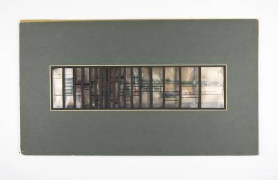 Brief description: A mounted design, landscape format, for windows for the courtyard of Webb St Primary School, London, SE1