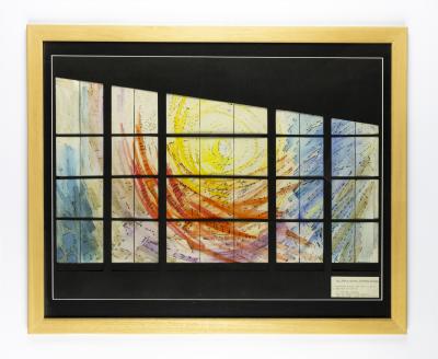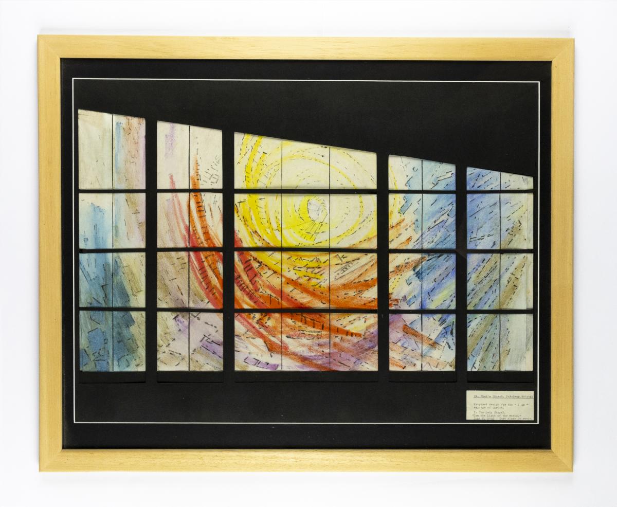 Brief description: A framed design for an abstract window at St ChadÂ’s Church. Patchway, Bristol (glass cast in resin)