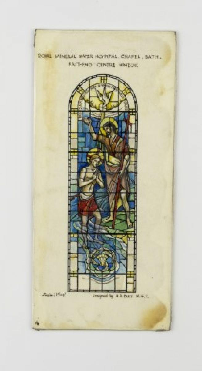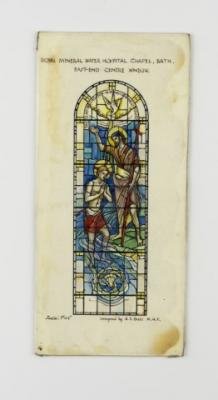 Brief description: Design for a stained glass window made up of one light depicting the baptism of Christ. Designed at the Goddard and Gibbs studio, London