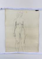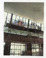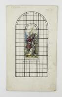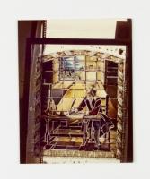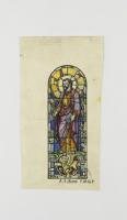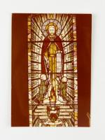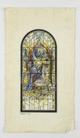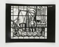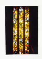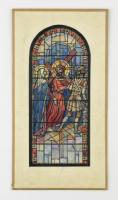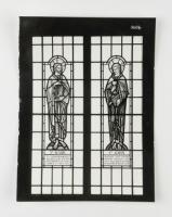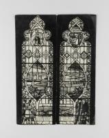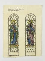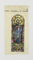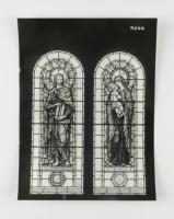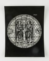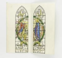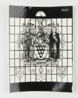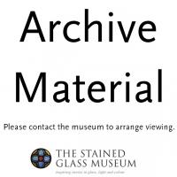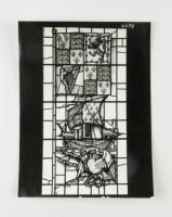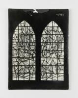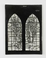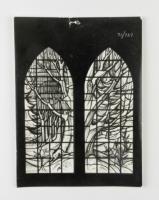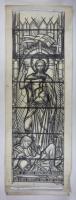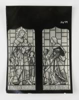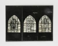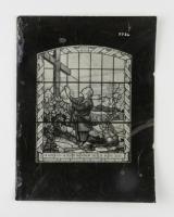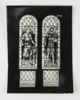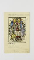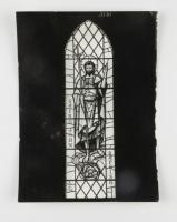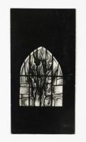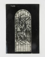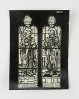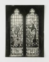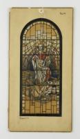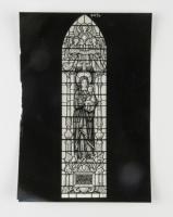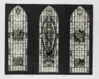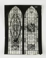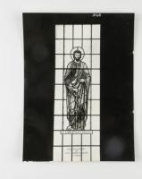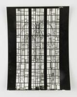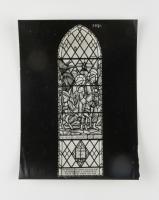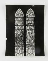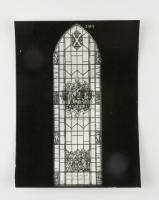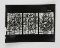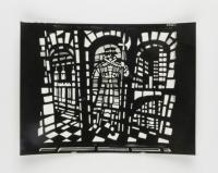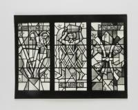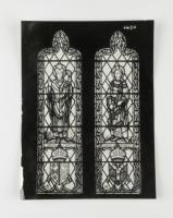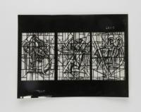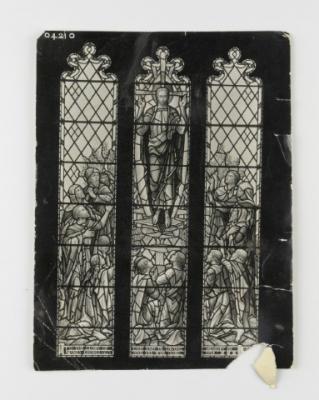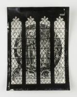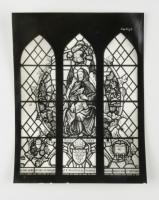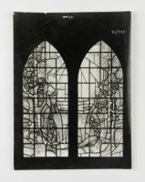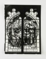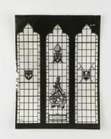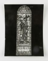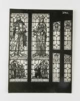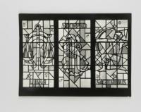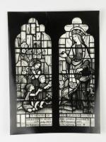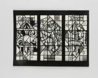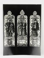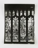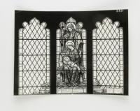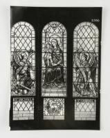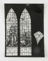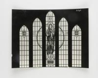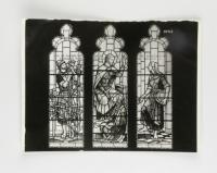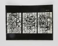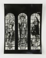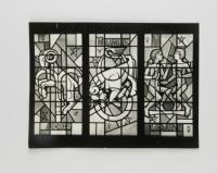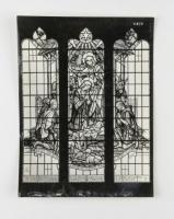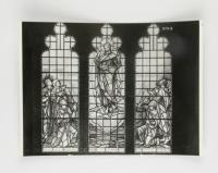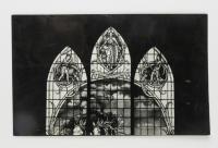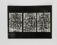 Brief description: Black and white photograph of a 3 light window depicting Christ's ascension. Designed at the Goddard and Gibbs studio, London