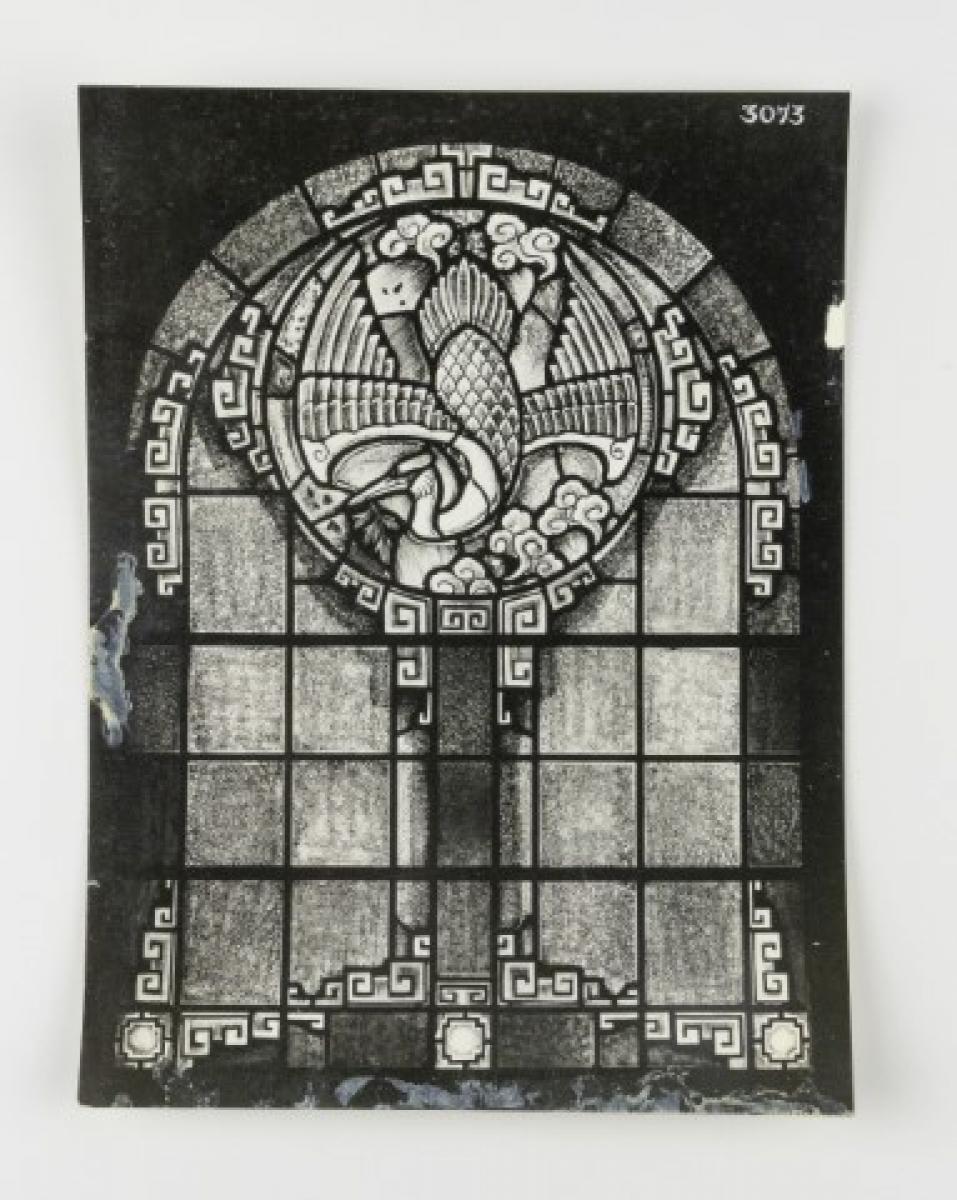 Brief description: Black and white photograph of a single light depicting a crane. Designed at the Goddard and Gibbs studio, London