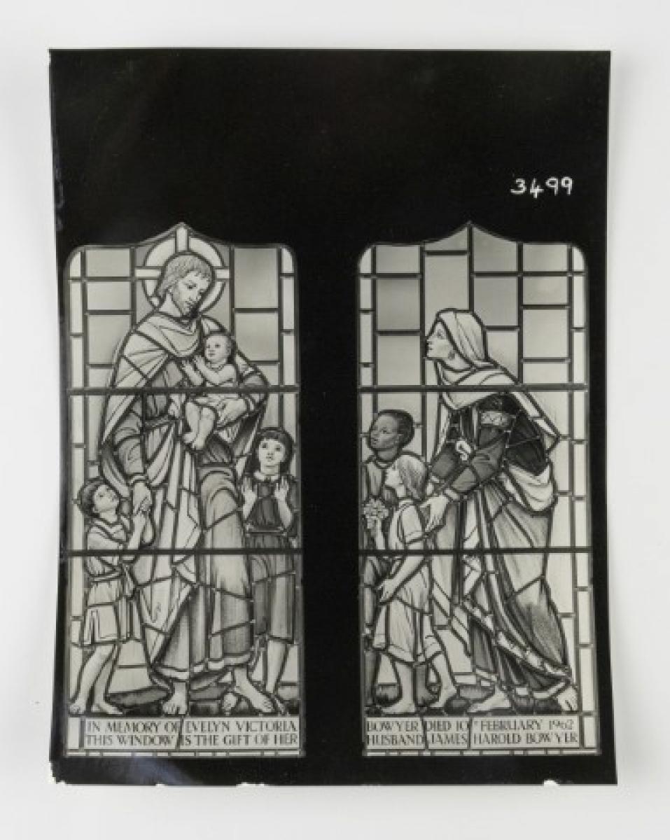 Inscription: IN MEMORY OF EVELYN VICTORIA BOWYER DIED 10TH FEBRUARY 1962 / THIS WINDOW IS THE GIFT OF HER HUSBAND JAMES HAROLD BOWYER